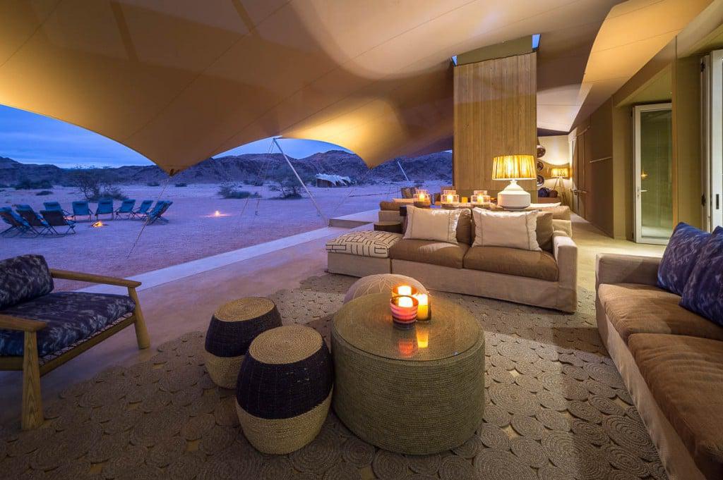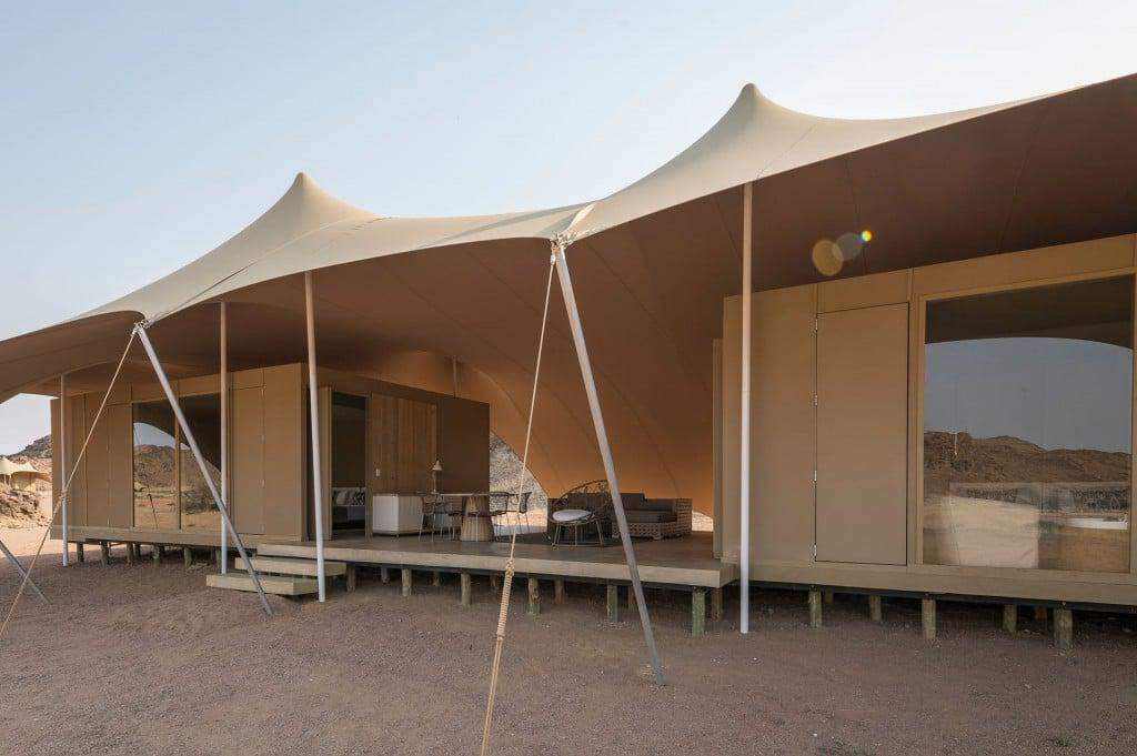 Beautiful and exclusive, in Namibia’s vast wilderness of the Skeleton Coast is the Hoanib Skeleton Coast Camp. With eight twin-bedded tents kept in comfortable simplicity, Hoanib Camp is a stylish retreat in the midst of vast plains, rocky mountains, and endless desert skies. Provided meals, drinks, and laundry in addition to accommodation create a relaxed all-inclusive stay.