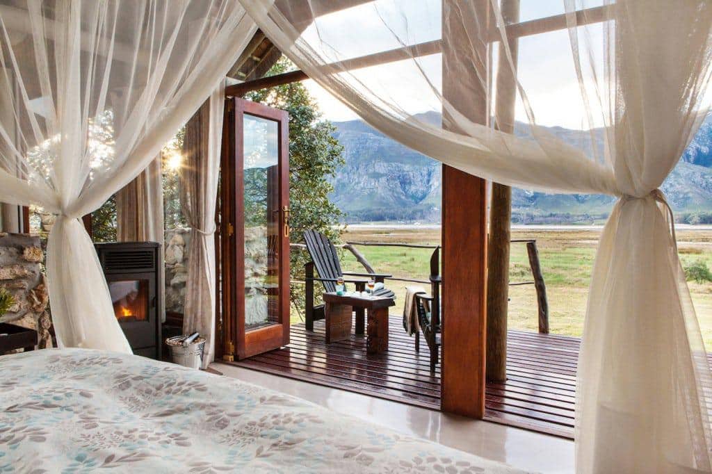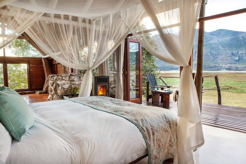 After a touch of bird watching from a secluded verandah, head down the boardwalks under a canopy of trees to the heated plunge pool overlooking the mountains and lagoon, where favourite water birds can be spotted. Drinks and meals are shared outdoors or in the dining room by a fireplace that will warm one’s soul.