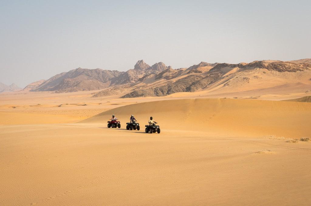 A day at the camp includes unique accommodations, all meals, laundry, and camp activities to give guests a full experience of the Namib desert. Encounter and learn about the local Himba community, a semi-nomadic and traditional native people who survive in the most remarkable conditions of aridity, and seem so happy for it. Venture into the desert on a guided quad bike excursion or nature drive, and learn about the fascinating habitat and means of preserving this landscape. Take your sundowner on the top of a hill and be spellbound by the vistas lit by the setting sun. In our view, Serra Cafema is the climax of any visit to Namibia.