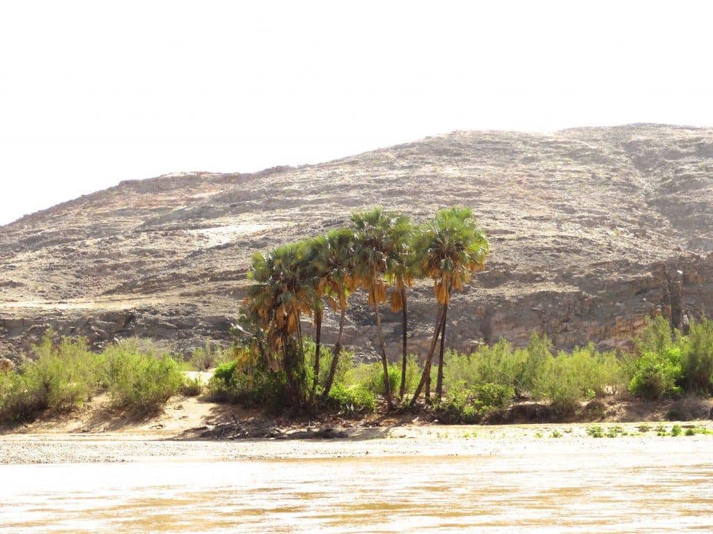 With such close proximity to the Kunene River, guests can enjoy the sounds of the soothing rushing water while noticing the contrast to the surrounding dry desert. As the only permanent source of water in this region, a lush oasis has been created along the river’s banks which surrounds the camp. Boating trips on the Kunene River provide guests with an opportunity to view the large population of Nile crocodiles and a variety of birds like the long-billed lark that live near the river. Small herds of wildlife can also be seen taking refreshment at the river.
