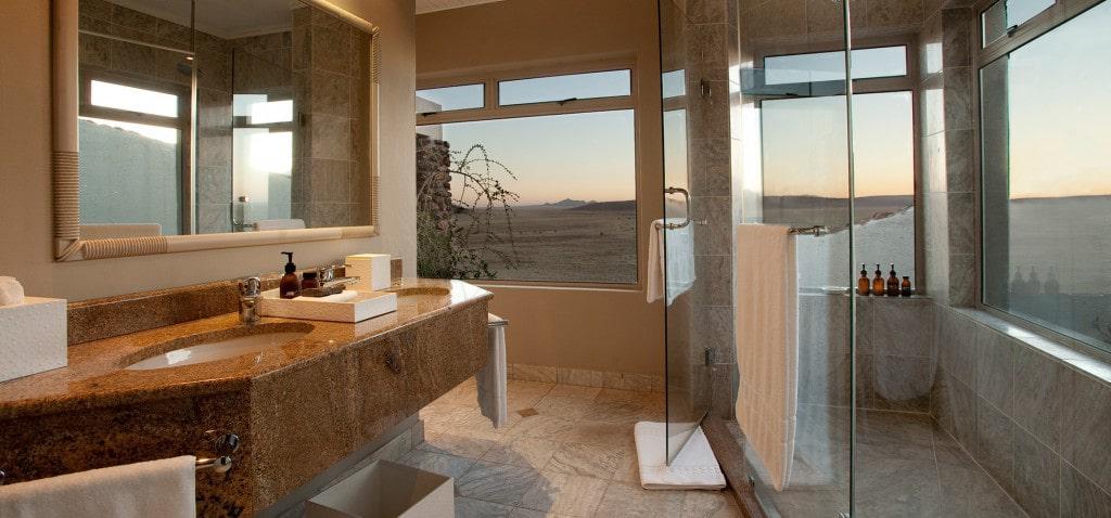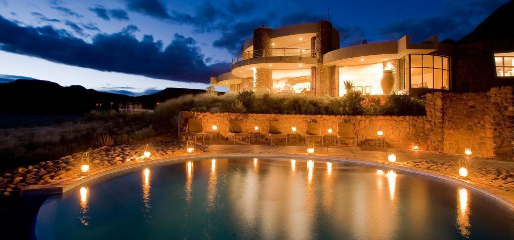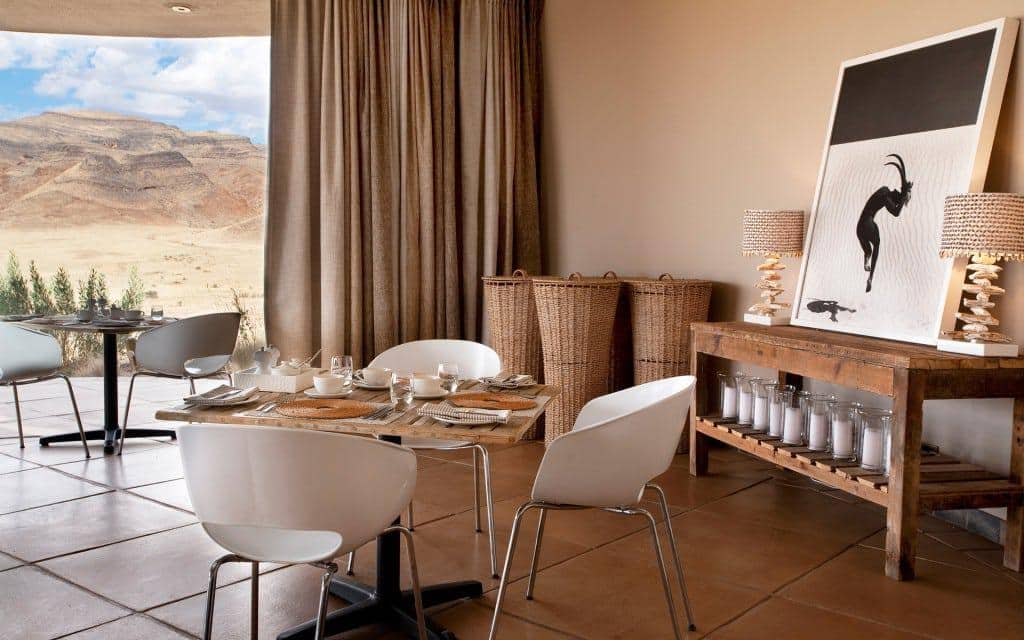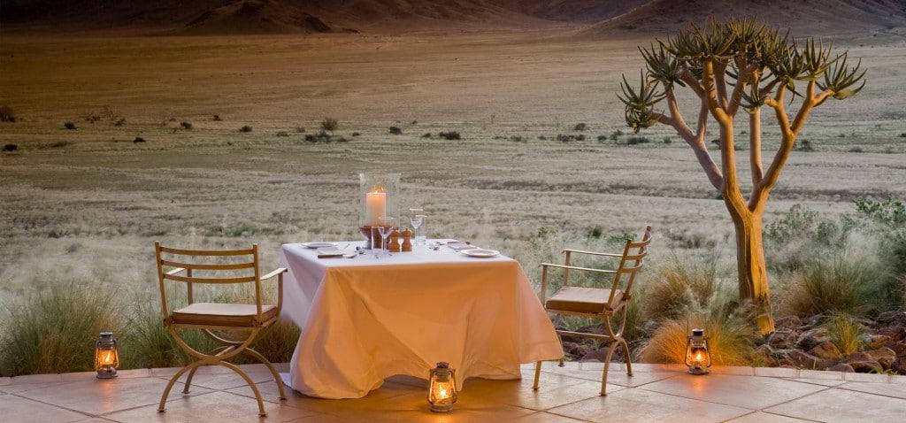 Enjoy the privacy of the desert in a true extraordinary getaway. Sossusvlei Desert Lodge offers ten air-conditioned stone and glass desert villas with skylights above the beds for ample opportunities to view the magnificent African stars. Elegant accommodations include luxurious linens, personal fireplaces, spacious rooms, and intimate verandas.