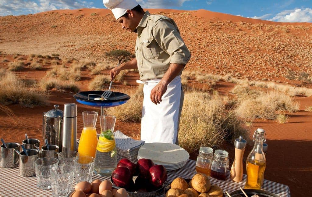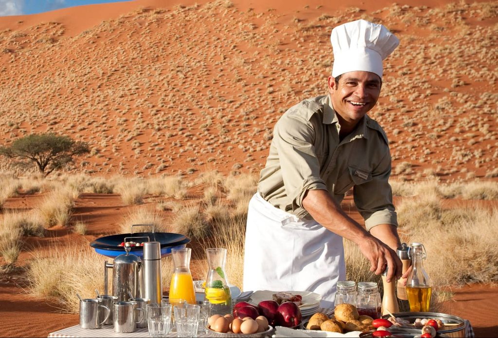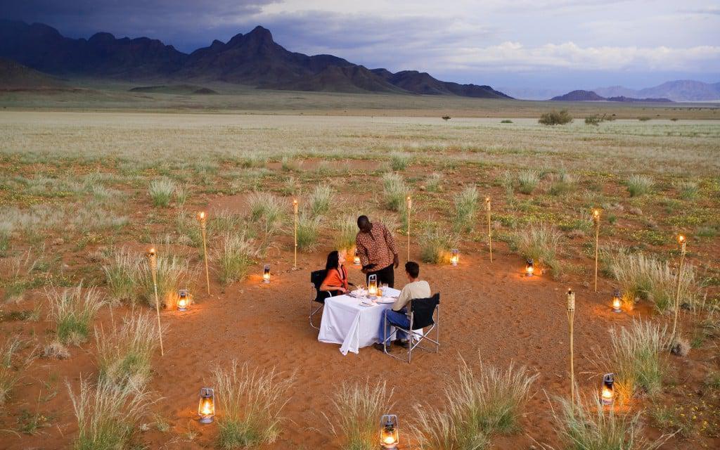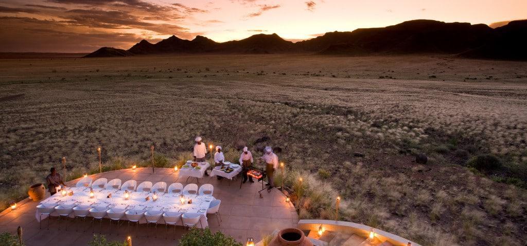 Spend a day visiting and hiking the remarkable Sossusvlei Dunes, the largest sand dunes in the world. Participate in a scenic nature drive across the NamibRand Nature Reserve, hike to discover San Bushman cave paintings, view the wildlife as they approach the nearby water for refreshment, or step it up a notch and hop on a quad for a desert adventure. Whether returning from an active or relaxed day, dine under the dramatic desert sky and observe nature’s extraordinary beauty.