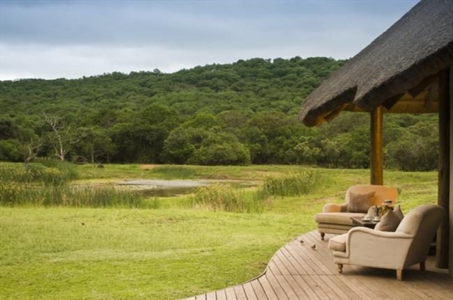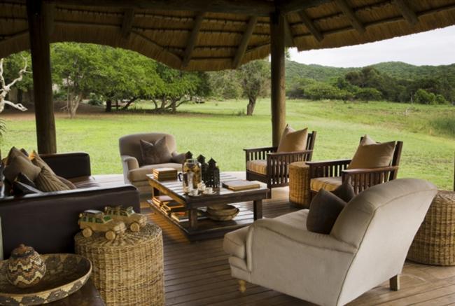 Guest areas include an interactive café style kitchen, indoor sitting and dining areas, an intimate library with internet access, and a swimming pool with an extended wooden deck overlooking the surrounding African wilderness.